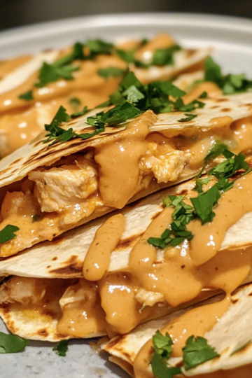 Cheesy Hot Honey Chicken Quesadillas with Spicy Jalapeño Cream Sauce