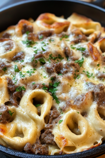 Cheesesteak Tortellini in Rich Provolone Sauce