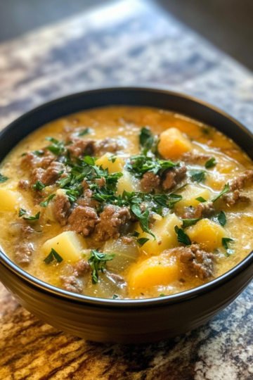 Cheesy Beef & Potato Soup