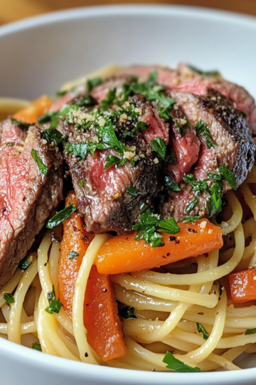 Cowboy Butter Steak Linguine with Roasted Carrots & Parsley Recipe