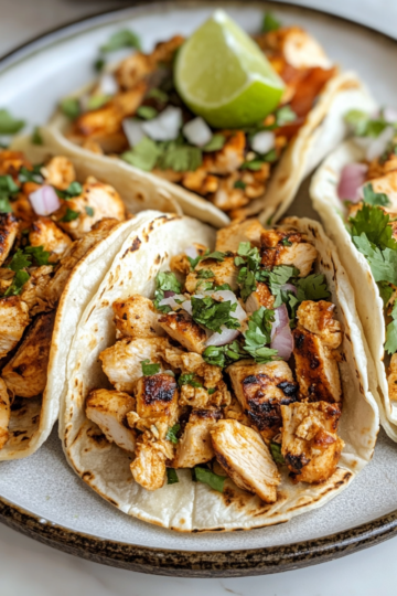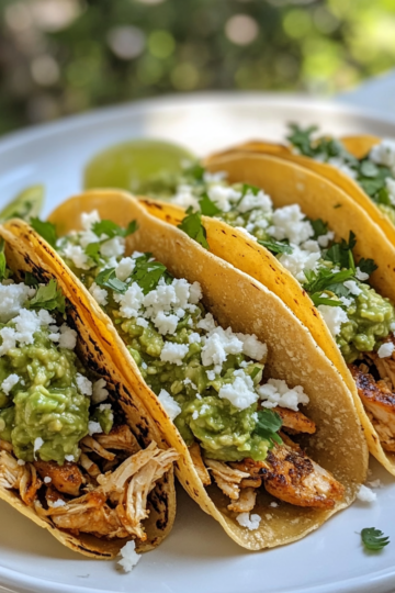 Authentic Mexican Chicken Street Tacos with Fresh Guacamole and Crumbled Cheese - Lone Recipes