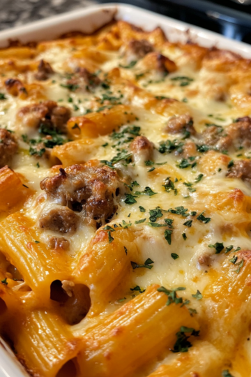 Beef Rigatoni Cheese Bake - Crisp Tastes